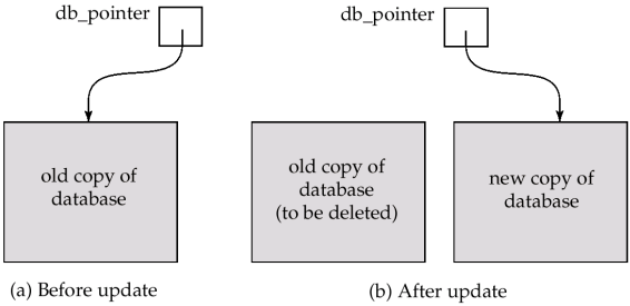 In case transaction fails, old consistent copy pointed to by db_pointer can be used, and the shadow copy can be deleted.