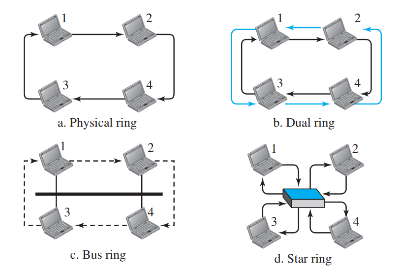 In the token-passing method, the stations in a network are organized in a logical ring. In other words, for each station, there is a predecessor and a successor. The predecessor is the station which is logically before the station in the ring; the successor is the station which is after the station in the ring. The current station is the one that is accessing the channel now. The right to this access has been passed from the predecessor to the current station. The right will be passed to the successor when the current station has no more data to send.